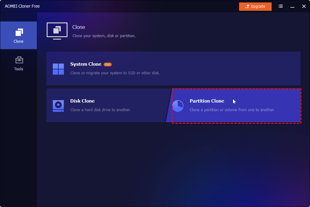 Note: The free edition can only clone non-system partitions. If your Steam library is on the system drive, please upgrade to AOMEI Cloner Professional to unlock the System Clone feature.