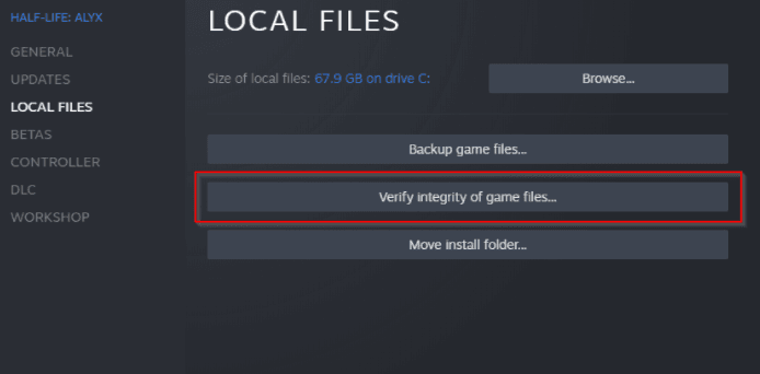 4. Click Verify integrity of game files. Wait for Steam to finish scanning and repairing any corrupted data.