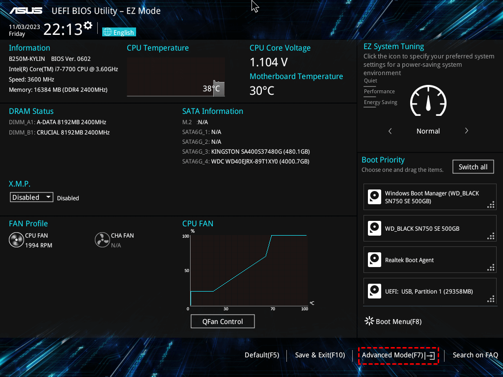4. After entering the BIOS configuration, use the cursor to click [Advanced Mode] that the screen displayed.