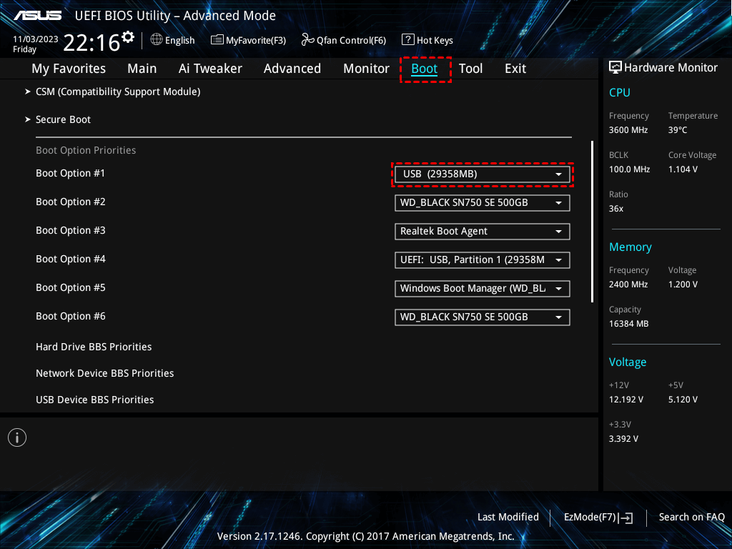 Here we take the ASUS motherboard as an example to introduce how to boot from USB.