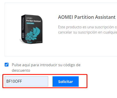 Marque la casilla para introducir el código del cupón y haga clic en "Solicitar".