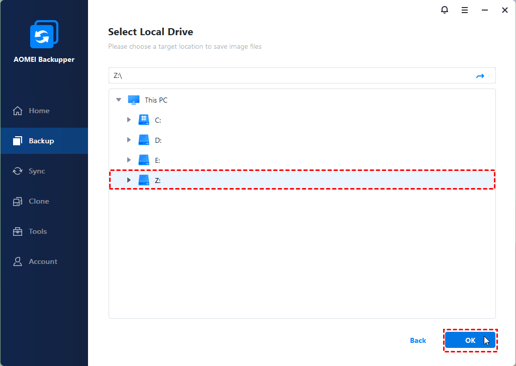 After mapping the folder successfully, you can back up to the directory of the network folder just like backing up to a local location.
