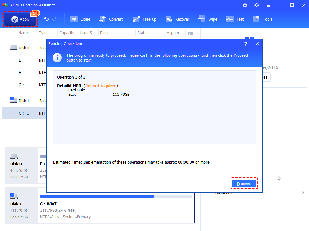 You can use AOMEI Partition Assistant to fix or rebuild the MBR and repair boot issues. Follow the steps below to resolve Error Code 45 quickly and safely.