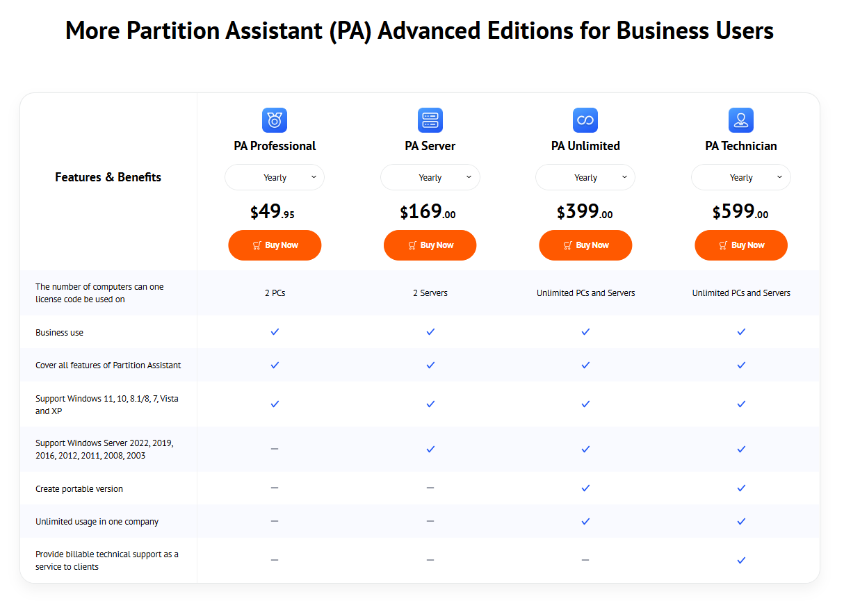 For paid editions without lifetime upgrades, updates are free only during the valid service period like yearly subscriptions, users can receive all updates and upgrades as long as their subscription remains active. After the period ends, users need to pay if they want to upgrade to the next version. AOMEI offers a comparison page where users can enter their current license code to see the upgrade price clearly.