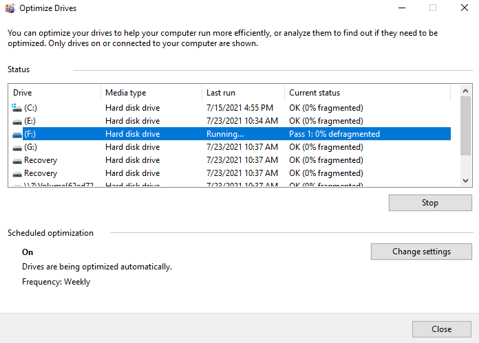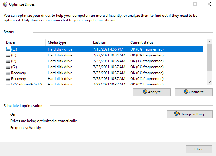 1. Windows built-in defragmenter