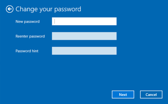 Step 4. To remove the existing password, just leave the "New password", "Reenter password", and "Password hint" empty and then click "Next". After that, you can bypass Windows 10 login password successfully.