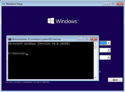 Way 2. Bypass Windows 10 Password with Windows installation disk