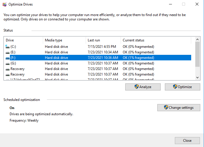 Step 5. If it does, click “Optimize” to begin the defragmentation process.