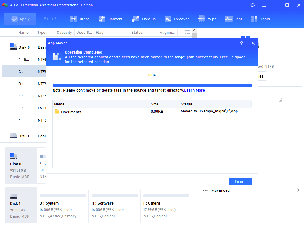 If you prefer to avoid complicated steps or command-line operations, a third-party tool can simplify the process. AOMEI Partition Software is a user-friendly solution for Windows 7, 8, 8.1, 10, and 11 that allows you to safely move folders and even installed applications to another drive.