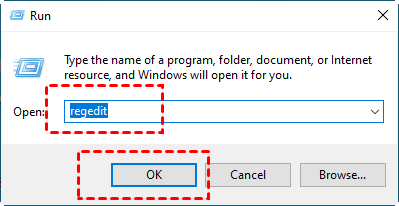 Step 2. Type regedit or regedit.exe and click OK to launch the Registry Editor.
