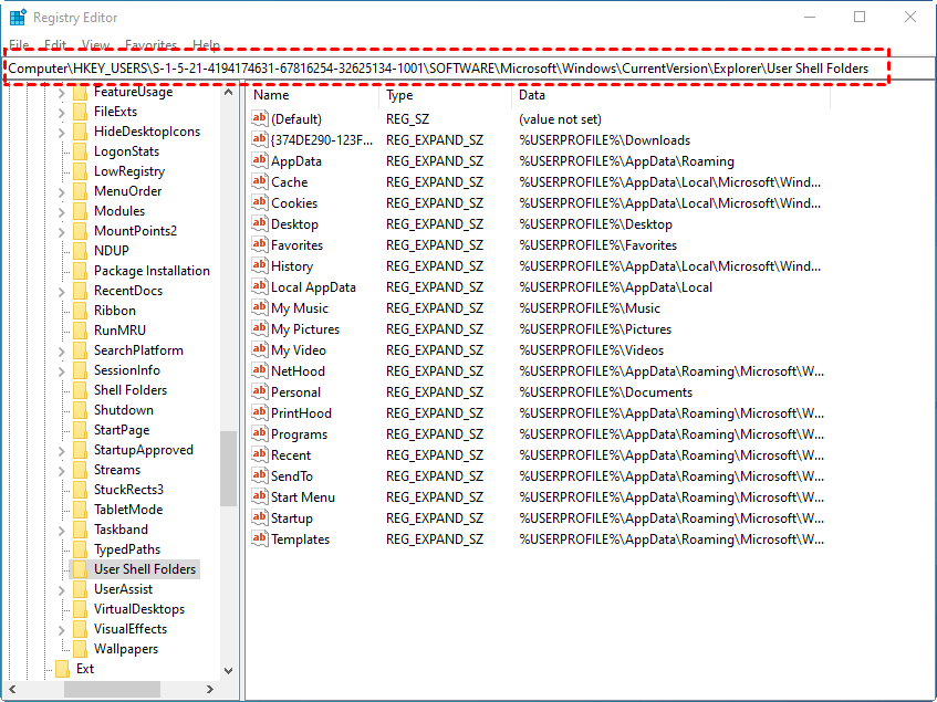 Way 2. Move folders with Registry Editor
