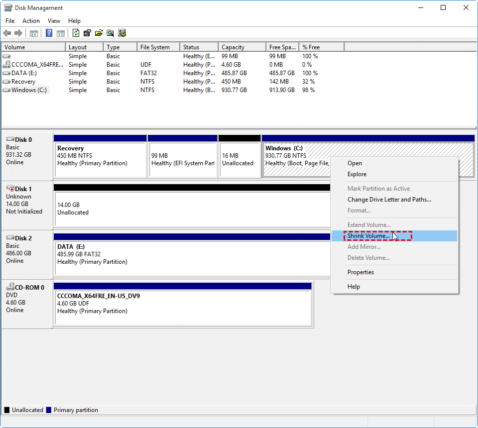 Way 1: Using Windows Disk Management