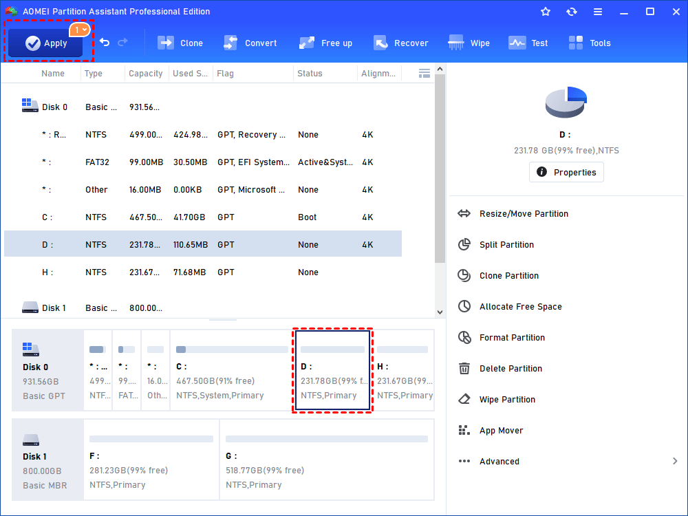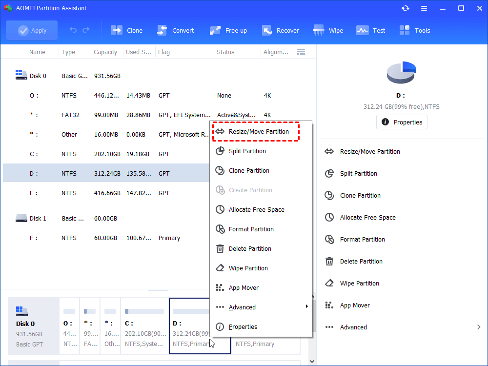 Way 2: Using AOMEI Partition Software