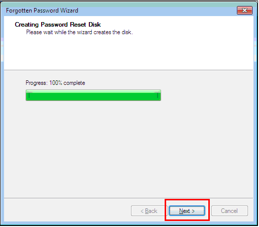 Step 5.Wait for the system to create the password reset disk on the selected USB drive. Once the process is finished, click"Next".