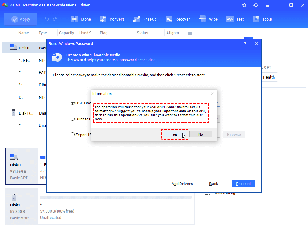 How to reset Windows 7 password with USB flash drive? Resetting your Windows 7 password using a password reset USB flash drive is a straightforward process that allows you to regain access to your computer without losing any data. However, when you forget to create it before, you cannot use this USB. Then you can try the shared AOMEI Partition Software.