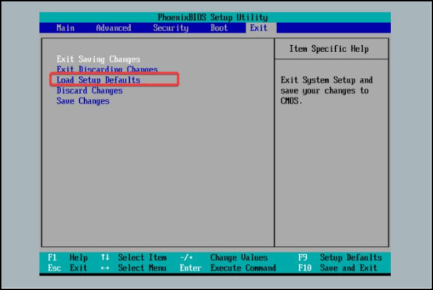 Step 2. Locate the Load Setup Defaults option to restore factory BIOS settings.