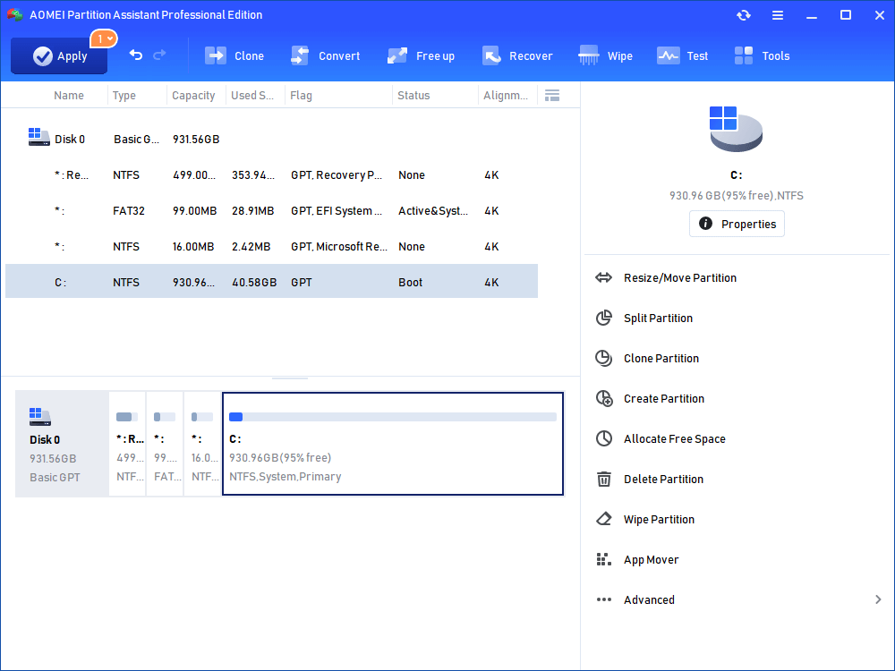 If you’re looking for a powerful and flexible tool to manage your drives—especially as an alternative to Samsung Data Migration (SDM)—AOMEI Partition Software is an excellent choice. While SDM is designed specifically for Samsung SSDs and focuses mainly on cloning system drives, it can be limited in features and compatibility.