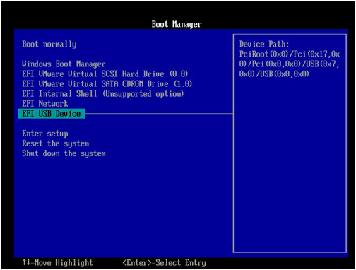 Step 8. Choose USB Device and press the “Enter” key to boot from the Windows 11 bootable USB.