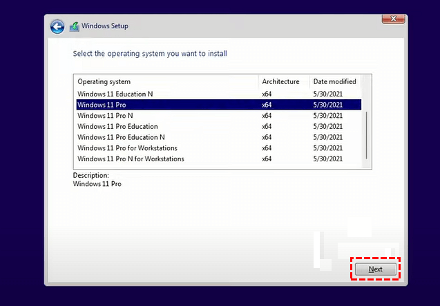 Step 6. Choose an OS edition you want to install and click “Next”.
