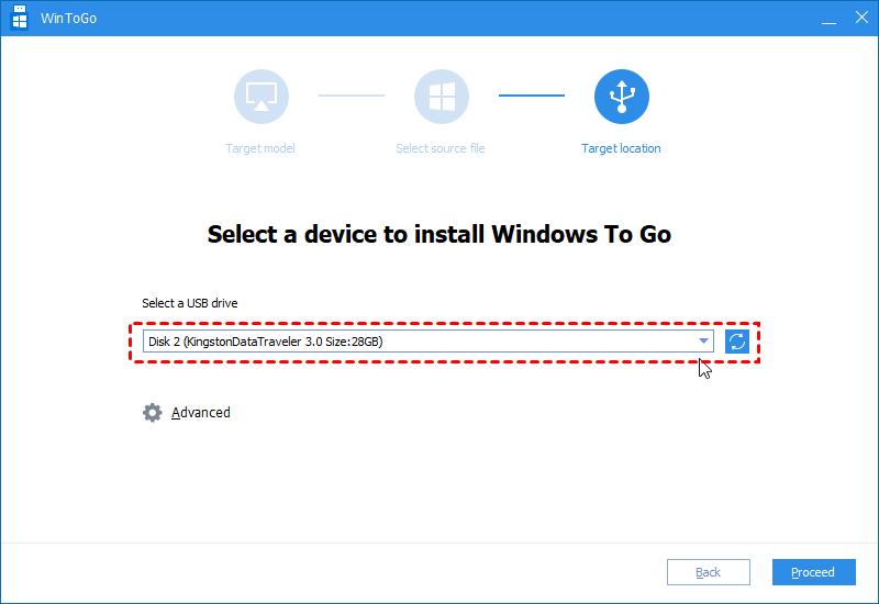 Step 5. Choose the USB drive as the target and select the “Proceed” button to continue.
