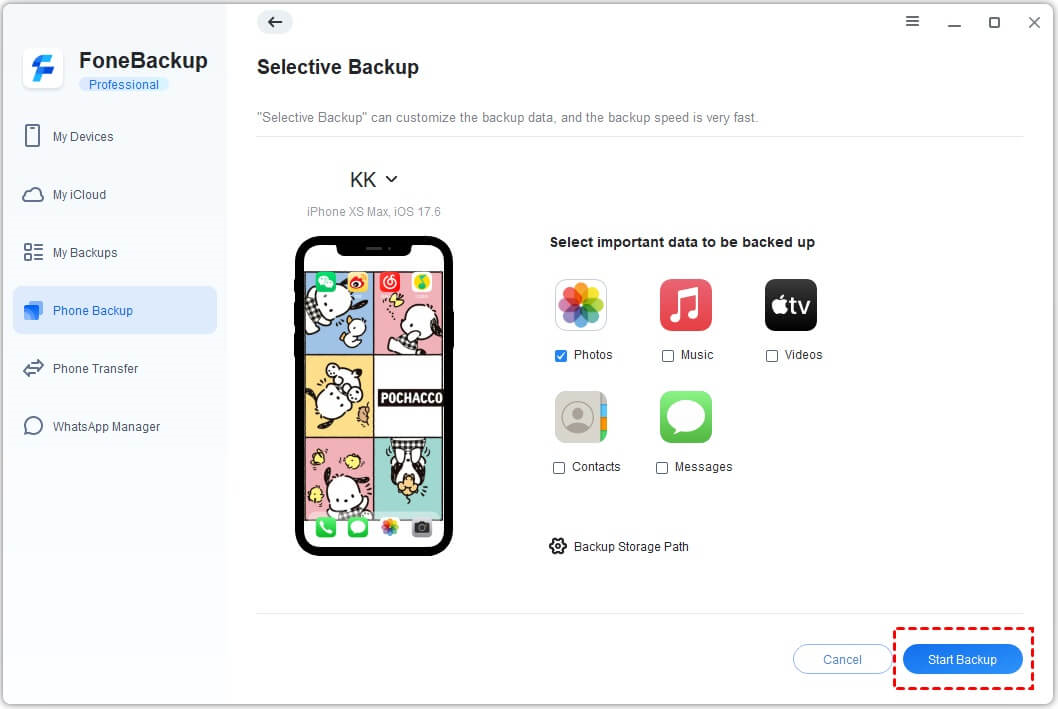 Step 2. Click Phone Backup, then choose Selective Backup. Check the Photos box.