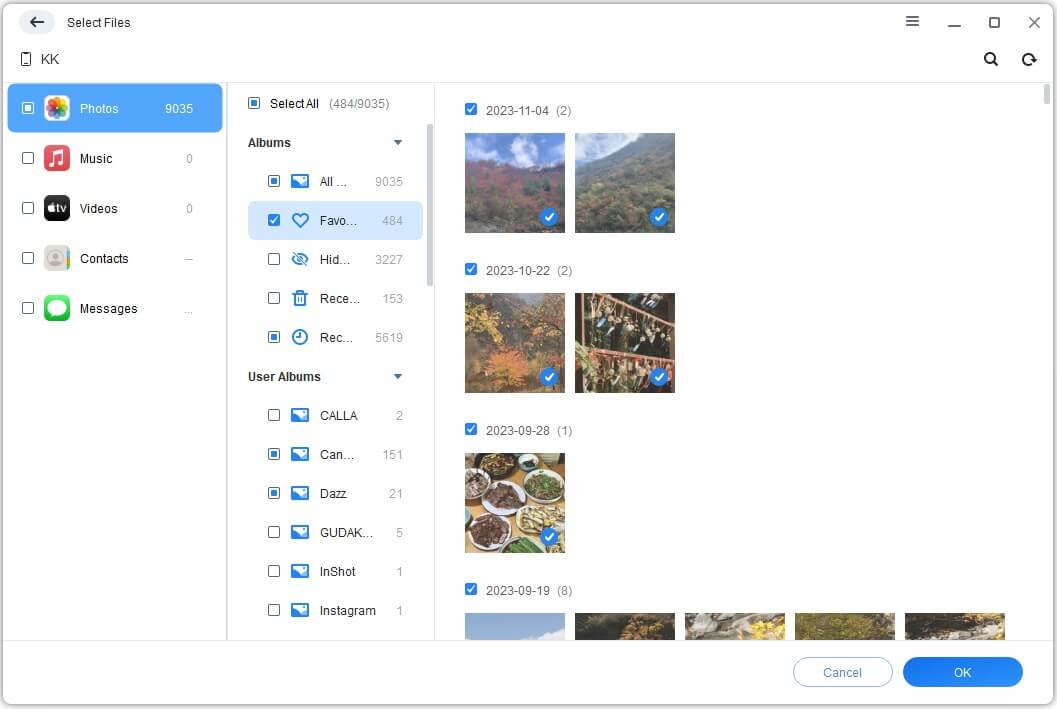 Step 3. Click the Photos category. You'll see all your photos—nice and organized. Pick the ones you want to print (select one, a few, or all of them). Click OK when you're done.