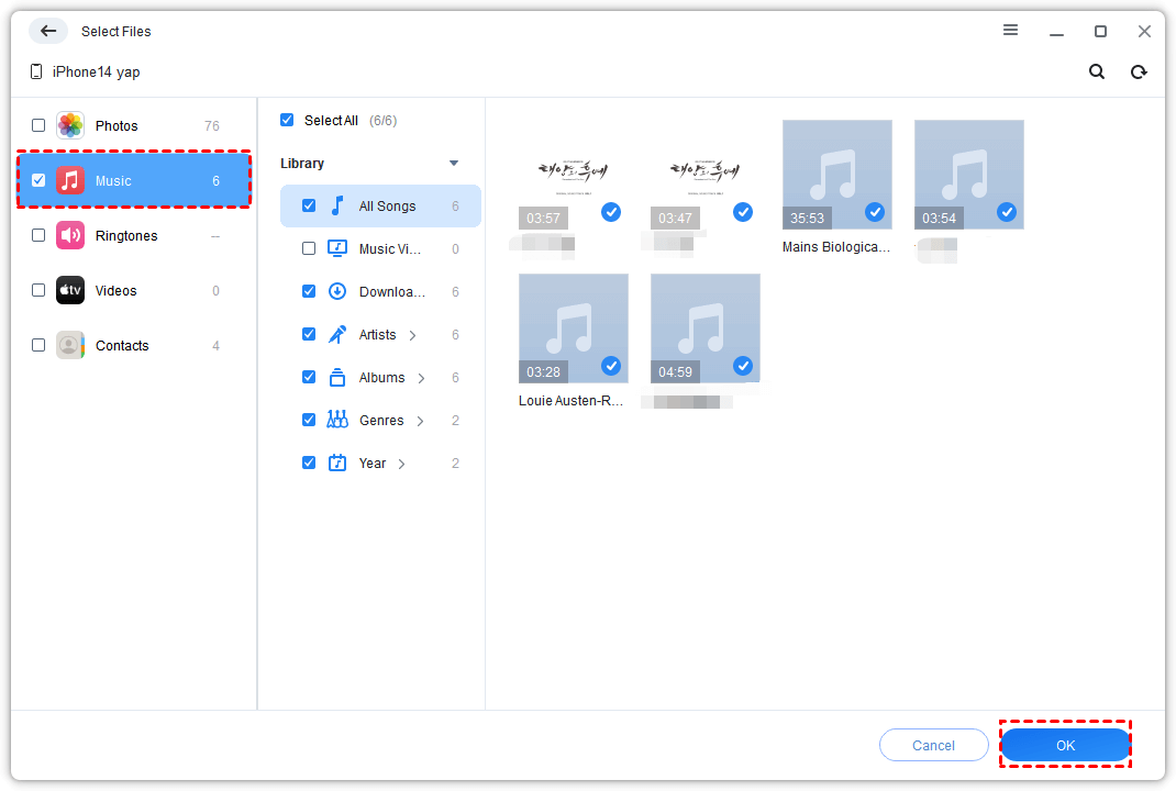 If you want a simpler, more flexible way to move music between your iPhone and computer, or between two iPhones, AOMEI FoneBackup handles it in a few clicks.
