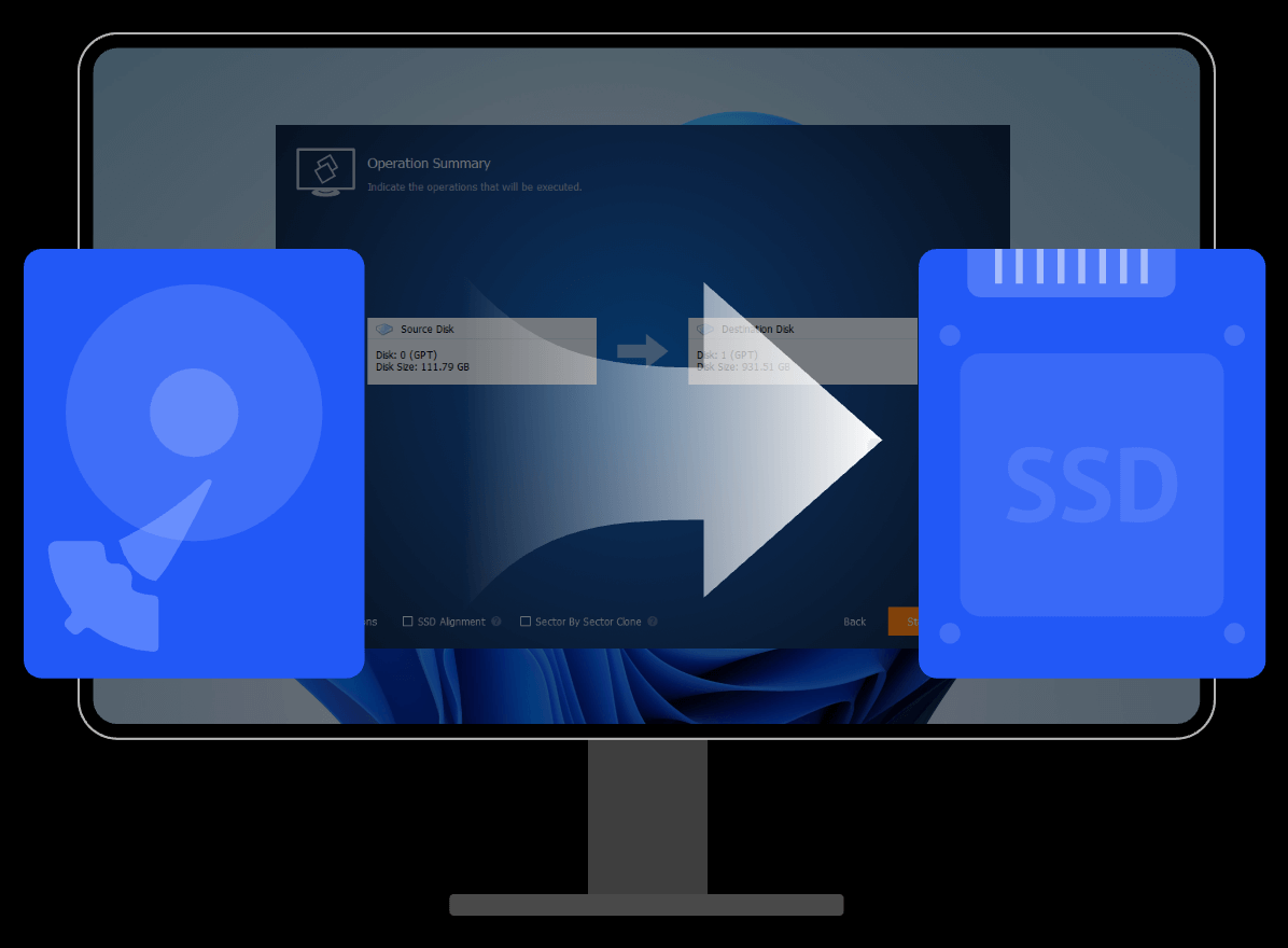 For better PC performance, it's wise to upgrade your HDD to SSD. AOMEI Backupper supports cloning hard disk drive to SSD of different sizes and different brands, covering Samsung, SanDisk and more.