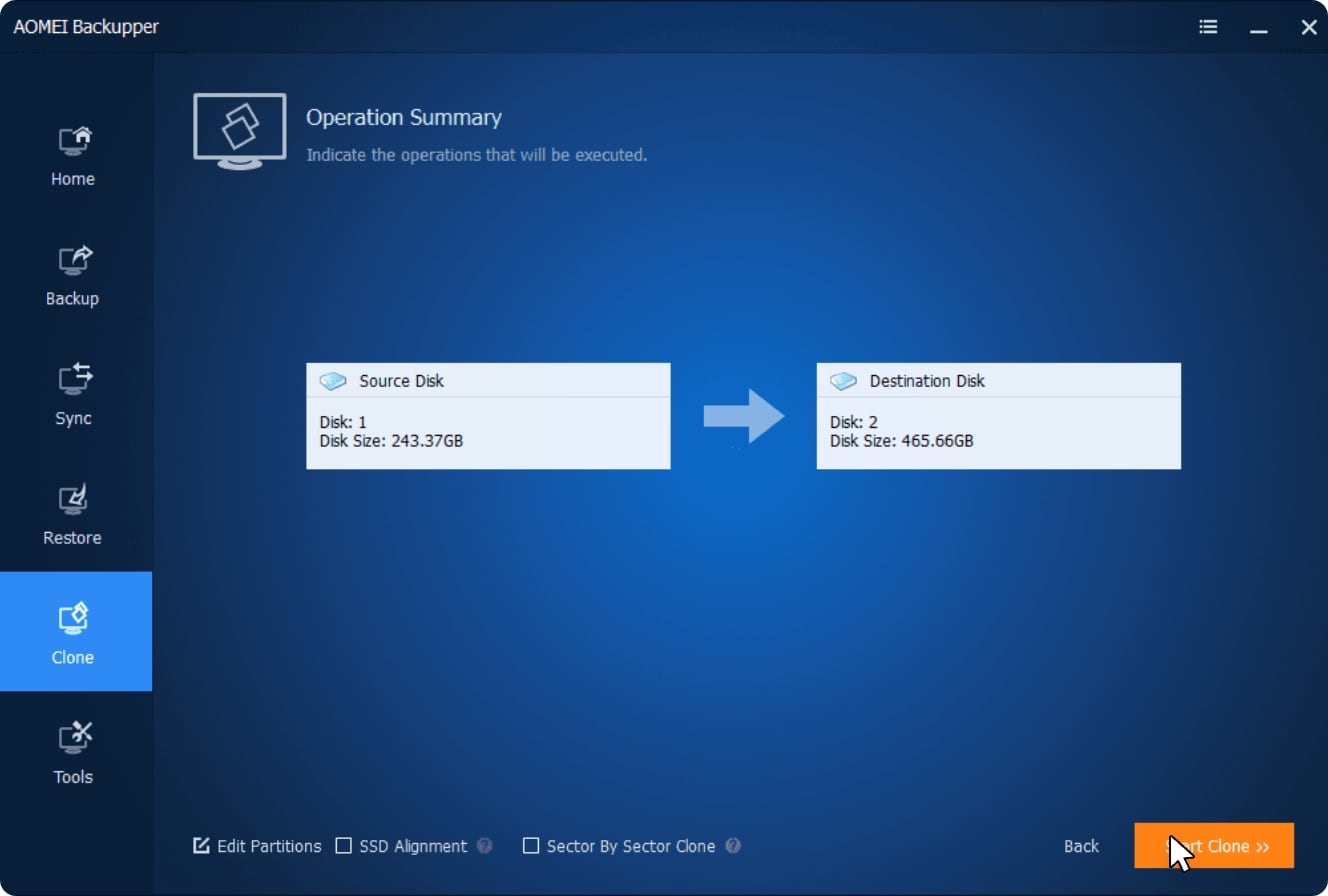 AOMEI Backupper is a great helper to clone larger HDD to smaller SSD without boot failure. It saves the life of my computer before it crashes.