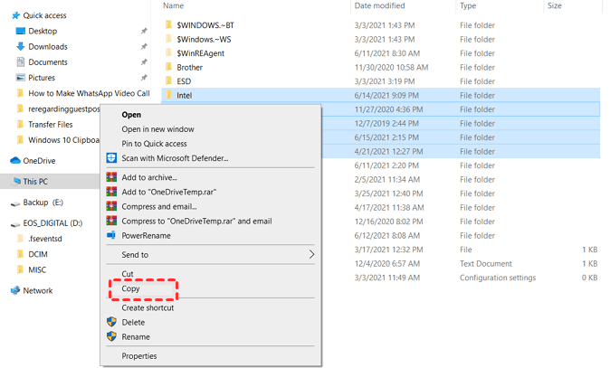 - Right-click > Copy, navigate to the external drive, right-click again and choose Paste.