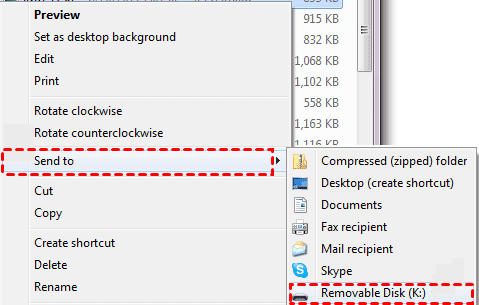 3. Right-click on a file or folder and select Send to > [Your external drive name].