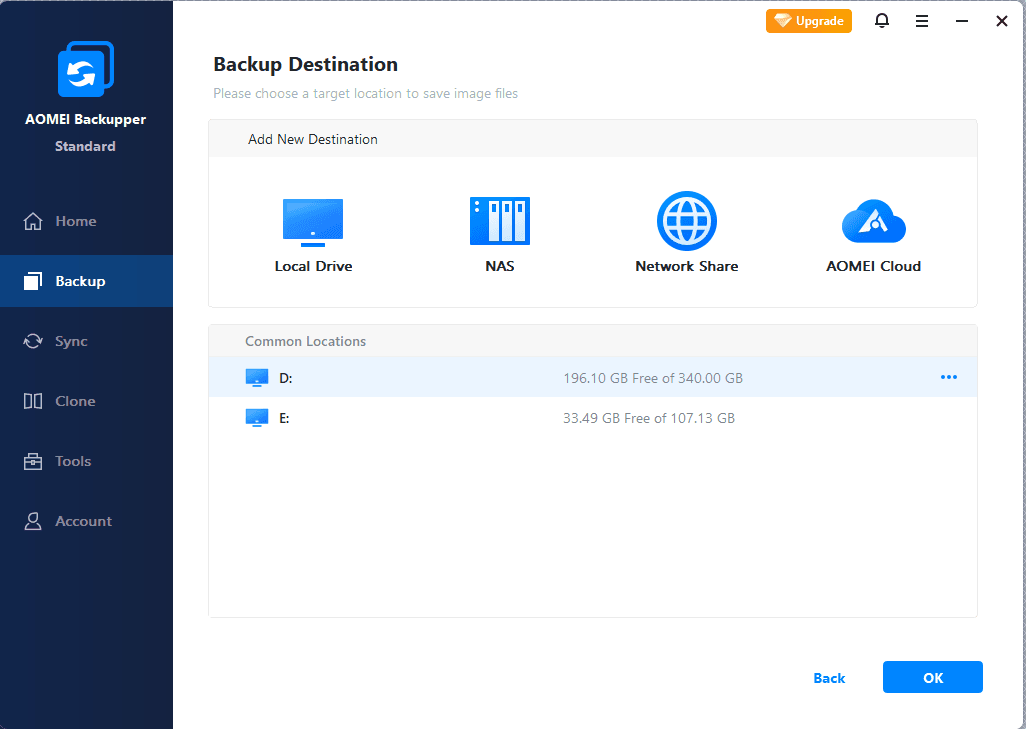 ✨Various destinations: You can backup PC to cloud, local disks, external drives, USB flash drives, or network locations.