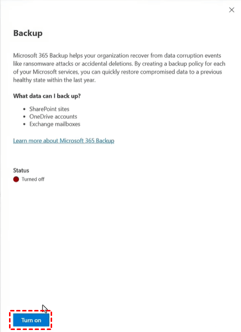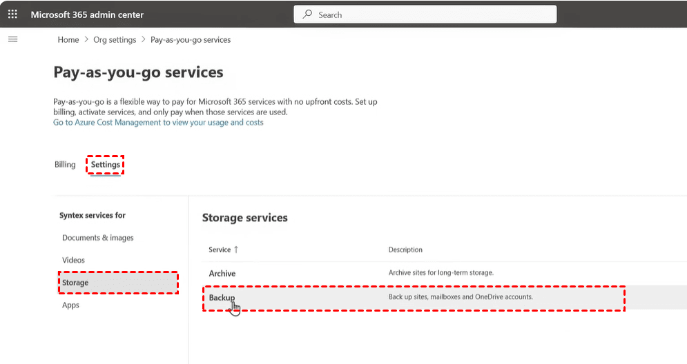 Step 1. Set up billing and turn on Microsoft 365 Backup
