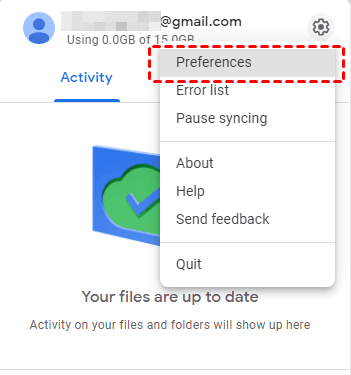 Step 2. Click the Google Drive icon in the taskbar, and select Settings > Preferences.