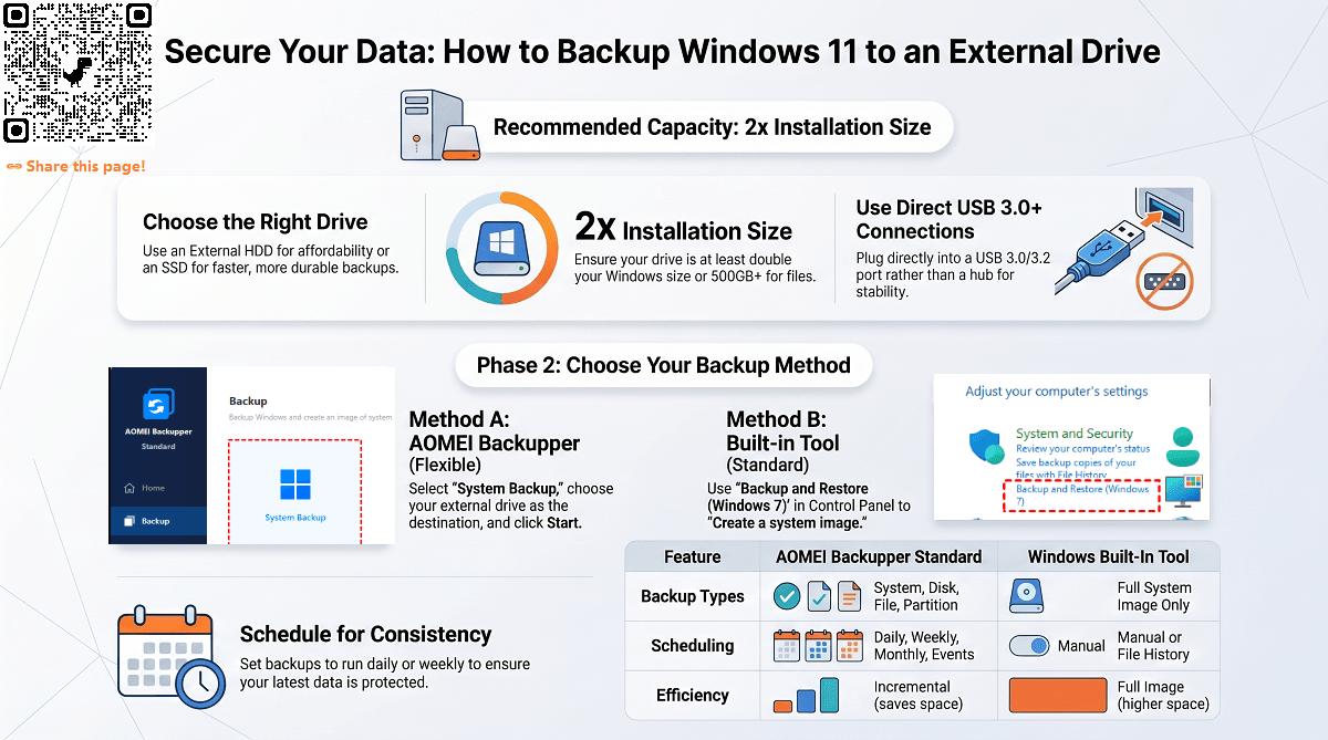 Don't risk a crashed system. This guide walks you through securing your Windows 11 system on an external hard drive, including built-in and third-party solutions.