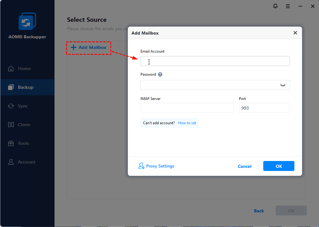 3. Click Add Mailbox and enter your Yahoo Mail credentials to add it. After your mailbox is added successfully, you can select one or more email folders to be backed up.