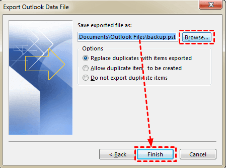 6. Click Browse to select a destination folder on your hard drive. Then click Finish to start exporting your Yahoo emails into a single .pst file.