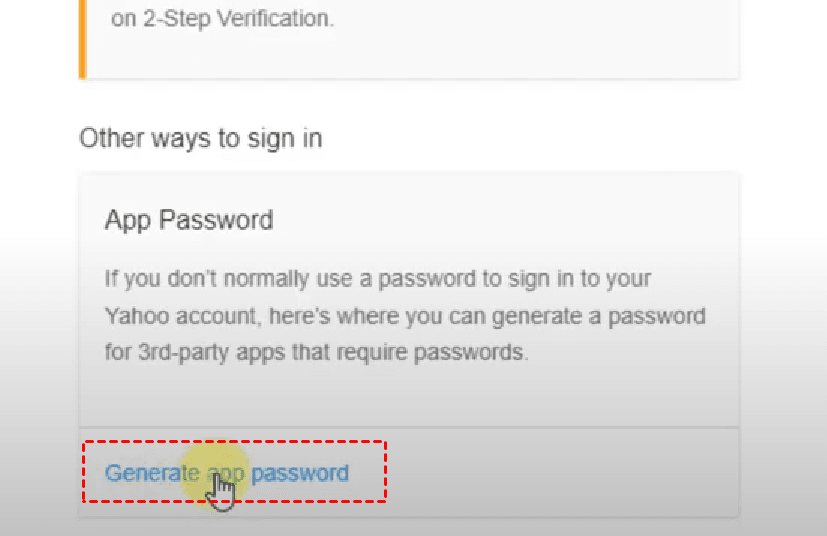 - Sign in to your Yahoo Account Security page. Under App passwords, click Generate app password.