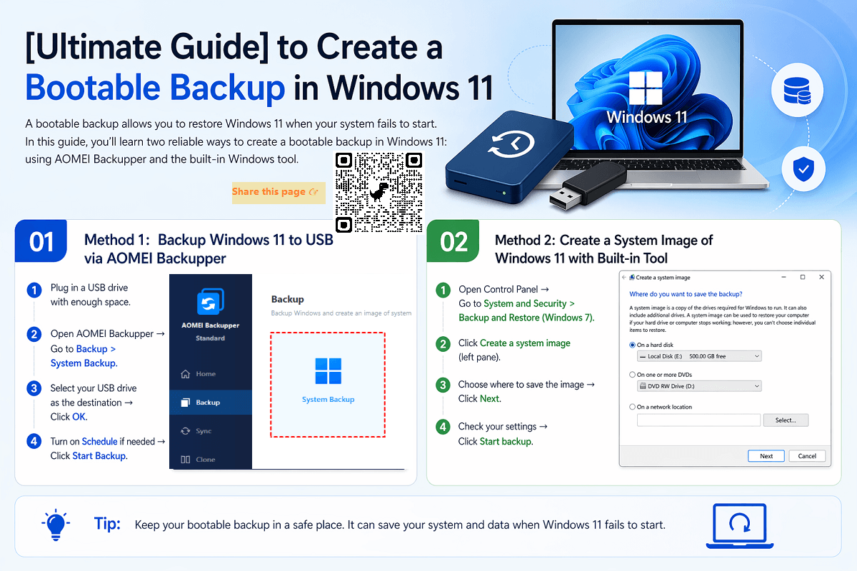 Creating a bootable backup in Windows 11 is one of the most reliable ways to protect your system against crashes, malware attacks, and hardware failures. This article compared a built-in tool with a third-party solution and provided step-by-step guidance for both.