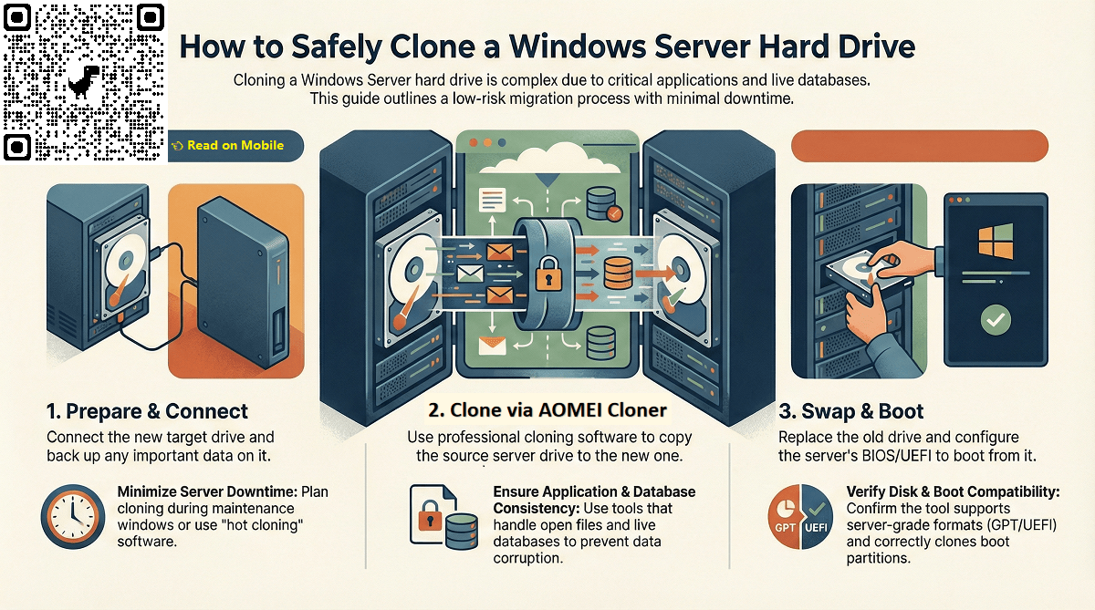 Cloning a Windows Server hard drive is more complex than a home PC due to critical roles, applications, and data. Careful planning is essential for a smooth, low-risk migration.