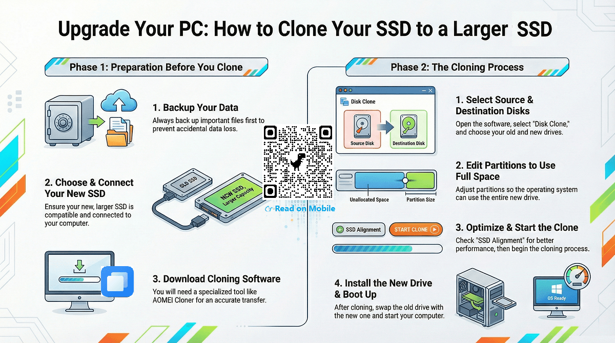 With the right tools like AOMEI Cloner and careful execution, cloning your SSD to a larger one can significantly enhance your computing experience, making it an investment in the life and performance of your system.