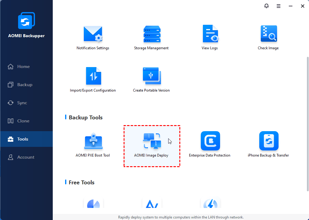 - AOMEI Image Deploy: Deploy or restore a system image across multiple PCs over your local network.