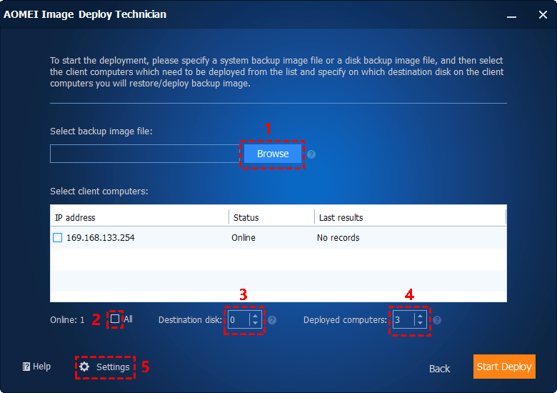 Now I’ll walk you through how to clone multiple computers over network via AOMEI Image Deploy (AID). Follow these steps carefully: