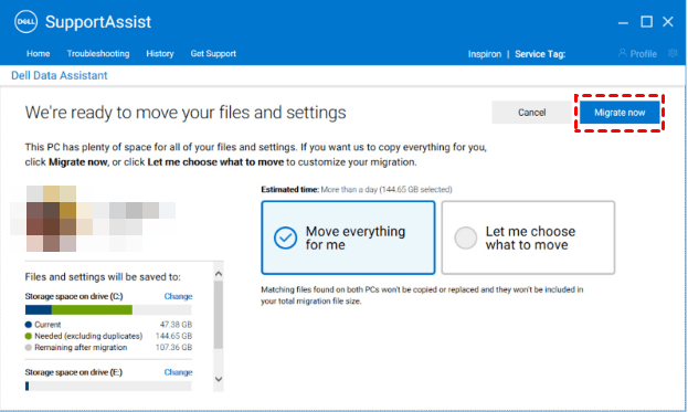 Dell Migrate is a paid service that is part of the Dell SupportAssist software. It is designed specifically for one-way moves from any Windows 7+ PC to a new Dell Inspiron, XPS, or Alienware.