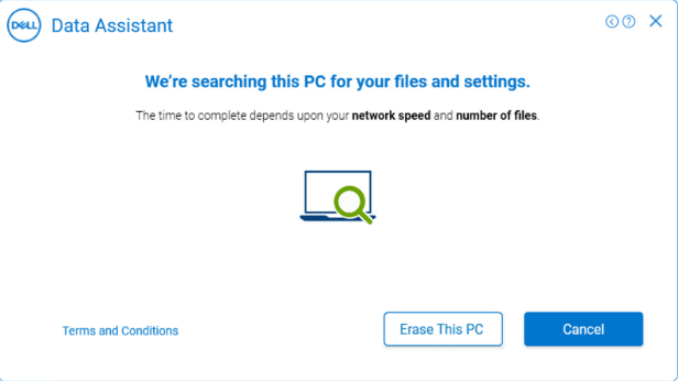 Step 4. Dell Migrate starts to search on the old computer for the files and settings to be migrated from the old computer to the new computer.