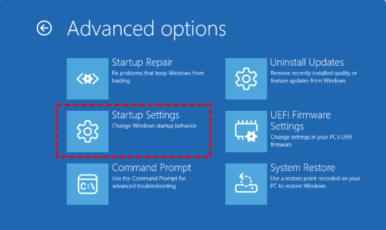 3. Select Troubleshoot → Advanced options → Startup Settings → Restart.