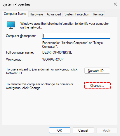 1. Press Win + R, type sysdm.cpl and press Enter.