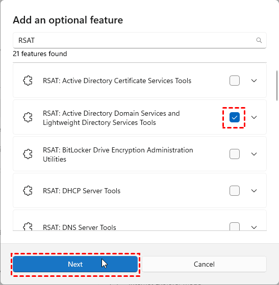 Now follow the steps below to install RSAT Active Directory on Windows 11.