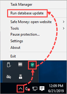 1️⃣ In the taskbar notification area, right-click the Kaspersky application icon, and select Run database update from the menu.