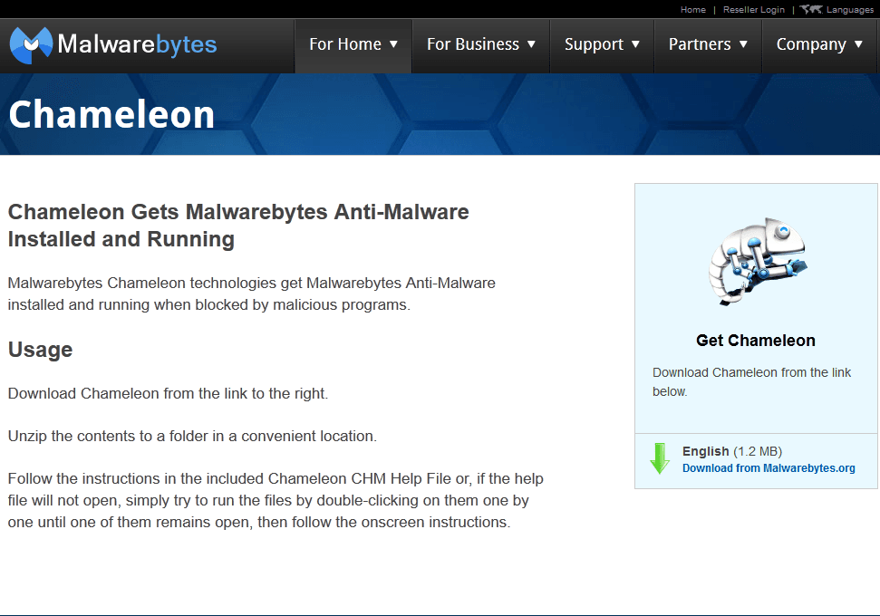 When malware actively blocks security programs, Malwarebytes includes a built-in self-defense tool called Chameleon. This tool disguises Malwarebytes to help it launch even when malware is trying to prevent it. This fix is especially useful if Malwarebytes is not responding or doesn’t open at all.